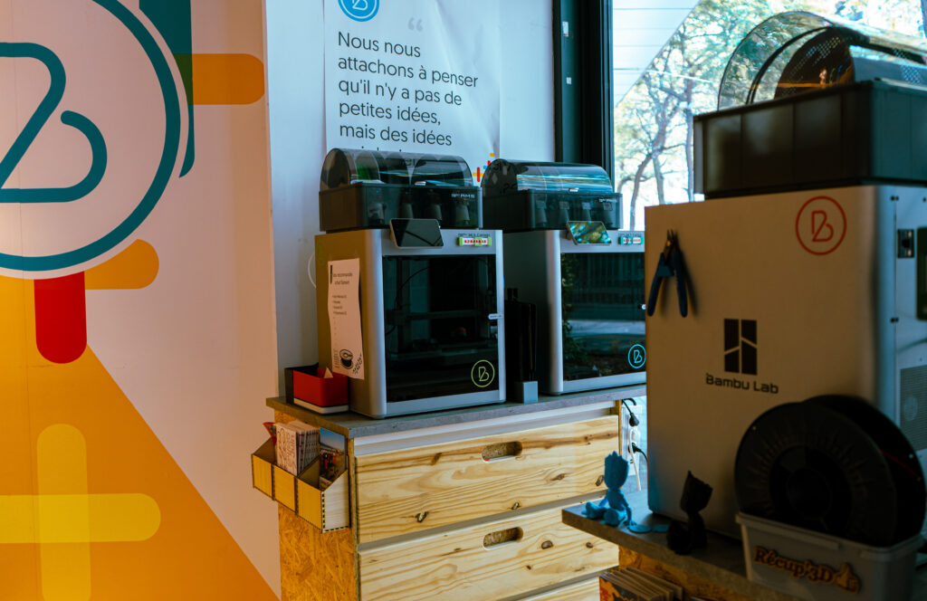 Au Blue Lab, nous mettons à votre disposition plusieurs imprimantes 3D, dont la Bambu Lab X1C et A1. Ces machines permettent d’imprimer avec divers matériaux comme le PLA, PETG, TPU et ABS.
