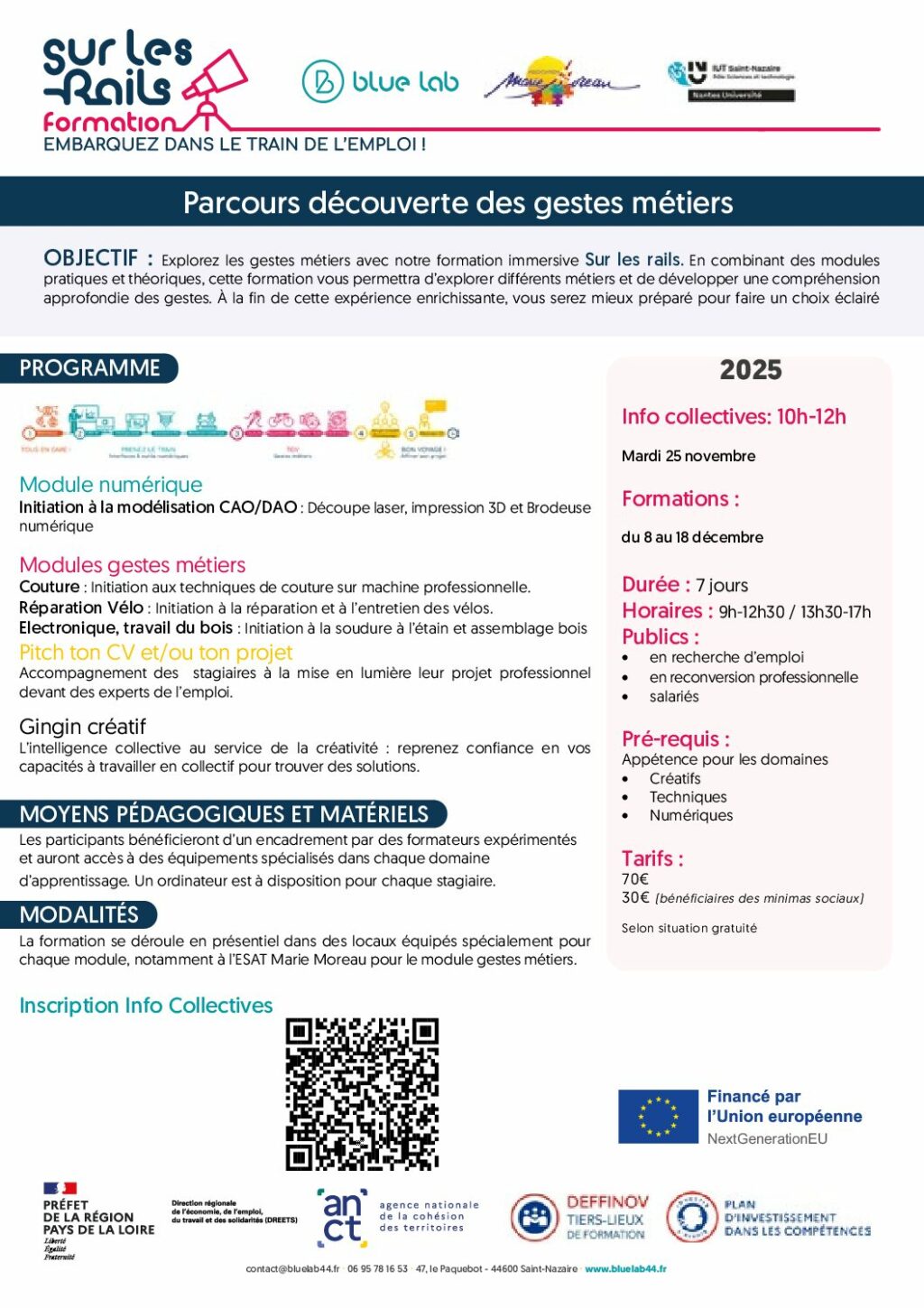 Explorez les gestes métiers avec notre formation immersive “Sur les rails”. En combinant des modules pratiques et théoriques, cette formation vous permettra d’explorer différents métiers et de développer une compréhension approfondie des gestes propres à chaque métier, guidés par des experts.